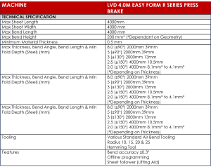 Bending parameters are automatically controlled by LVD’s unique ‘intelligent’ learning database, optimising the machine’s precision. The machine is also built using a welded one-piece frame, which also aids precision.