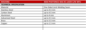 – MAX PHOTONICS MAI-45 LASER with WFU
