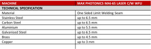 – MAX PHOTONICS MAI-65 LASER with WFU